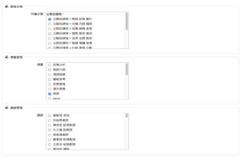 01依照課程、標籤及講師類別,可以輕鬆分類課程種類 |