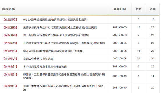 提供個人及團體報名功能 開辦政府單位委託或認可之受訓課程,以及企業各界人才培訓課程。