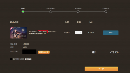 01依照購買流程選購相關數位商品,訂購完成後,等待發送遊戲代碼。 |