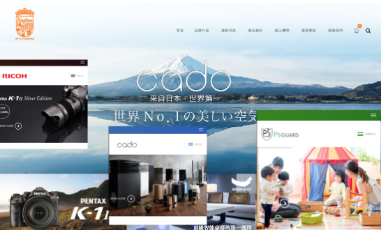 JPV集團代理RICOH.PENTAX,Cado,P’s GUARD等不同的品牌的商品,如:生活美學(相機、空氣清淨機等家電用品)、環境關懷的防護用品等..。