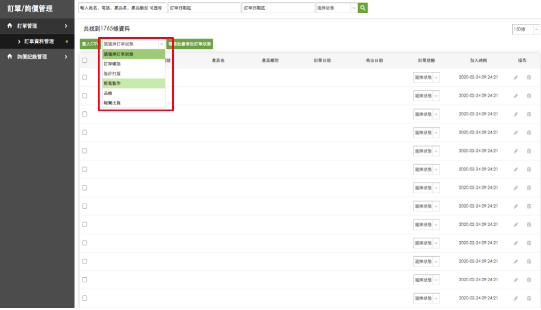 訂單查詢功能可於後台查詢相關訂單資訊,並可修改訂單狀態 |