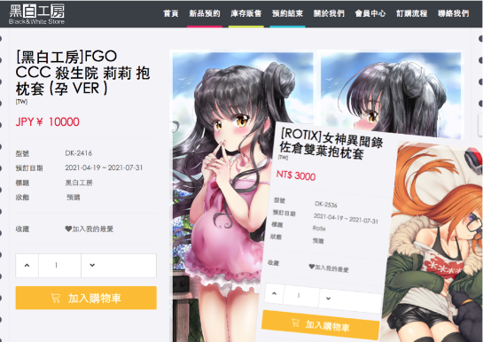 此平台專營台灣以及海外社團的二次元抱枕代理與制作,每個月都有不同的企劃上架,網站提供方便訂購流程,按照頁面指示操作即可結帳。