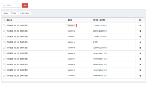 02後台管理系統可設定遊戲代碼序號,並傳送序號給訂購者。 |