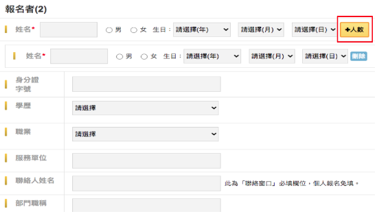| 01 點擊按鈕「+人數」,兩人以上即為團報門檻。 |