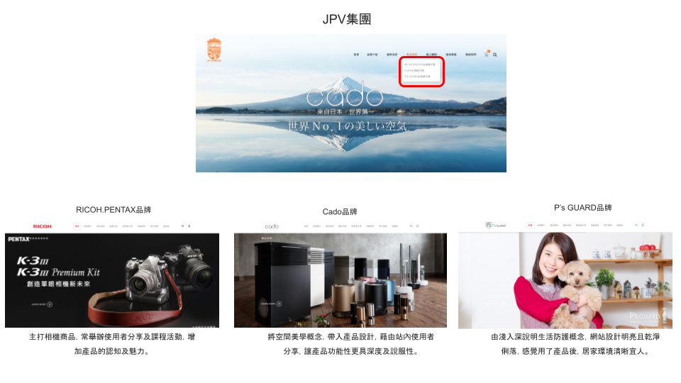 各品牌子站也常舉辦教學或徵文活動,讓喜愛該品牌的消費者看到更廣的使用層面,進而增加產品黏著度。 此站也是規劃共用管理後台,由後台產生品牌子站、發佈消息時可選擇出現在指定的品牌站、在子站購物時,會引導回集團官網,且訂單及會員也是共同管理。
